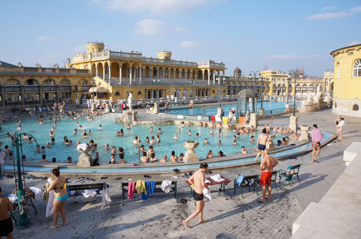 Prounounced Say-jane-ee (I think), I wasn’t planning on coming here since I chose Rudas, but after talking to the guy at Rudas, they mentioned this bath was also great as it had a outdoor pool. I had no other plans for the day as I had done all the touristy things, and my flight wasn’t until 9:30pm so I decided, what the hell, might as well go check out the other bath. This bath was designed by a Hungarian about 100 years ago so it is quite new as far as Baths go. It is located in the Budapest’s version of central park and is HUGE. There are probably 10 indoor baths here and one giant outdoor bath. This bath is a little more expensive at about 18$ but is 100% worth it. If you decide to go to Rudas, and then come to Szechenyi, you will be very disappointed with the indoor pools because while they are all nice, the architecture and general upkeep of the indoor baths absolutely pales in comparison to the inside of Rudas. You probably won’t stay inside for long because you will see views of the massive outdoor bath and eventually make your way there. The outdoor bath is where you get your money’s worth. You must walk outside to get to the outdoor pool and it was a cold 10 C, 50 F, but once you get in, you’re at a solid 38 C / 100 F, which feels absolutely divine with the cold air. Throw in the blue skies, Baroque architecture, and a few drinks that you can buy at the bar, this is truly a slice of heaven. I feel that Szechenyi is more of a social, party bath while Rudas is meant to just chill out and relax with friends. I met a pair of very nice Hungarian girls here and we seriously just chatted about our lives for a few hours but it felt like minutes. I always enjoy talking with locals and learning about what they think is normal in life. I think if I lived in Budapest, I’d probably come to these bath’s every day.