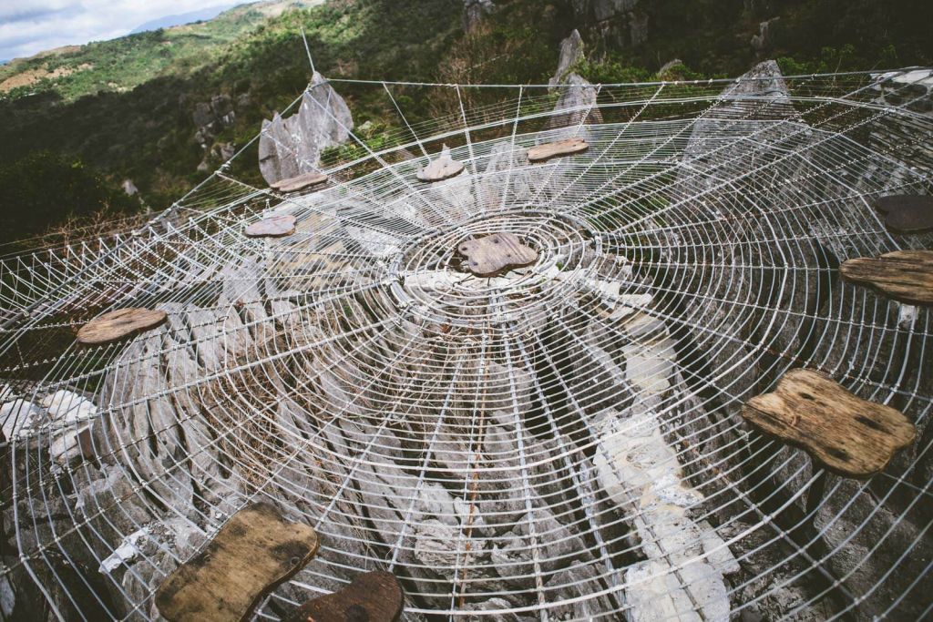 At Masungi Georeserve Sapot you can enjoy a stunning scenario of Laguna de Bay, the largest lake in the Philippines – by standing upon a spider web platform.