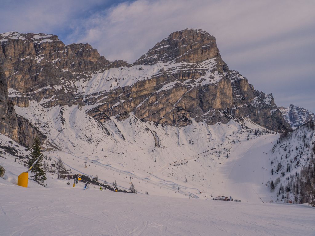 As you ski down, you’ll be greeted with in your face stunning views of the Sassongher mountain.