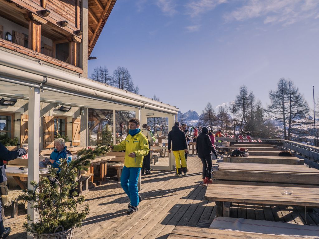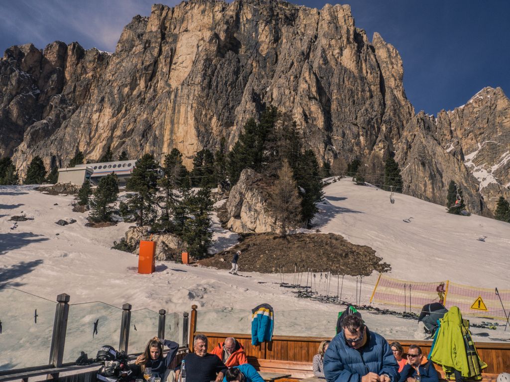 After the Borest Gondola, take the Colfosco Gondola right next to it. From the top of Colfosco, take the Forcelles ski lift which takes you to the very top where there is a delicious rifugio serving al dente pasta. This ski track is also incredibly enjoyable as there is usually not too many people.
