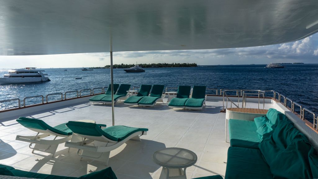The roof deck was pure bliss. Views of the nearby islands as we cruised through the Maldives was something special. Can’t think of a better way to pass a surface interval! There were plenty of lounge chairs, comfortable cushions, and a covered area for everyone to lounge out on.