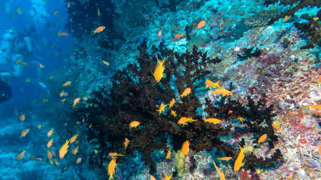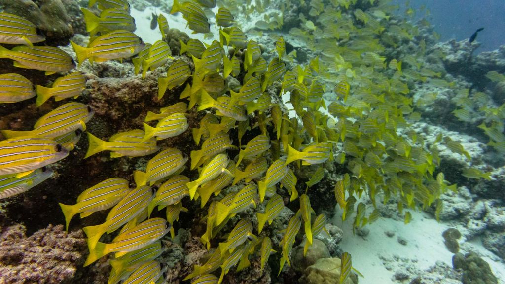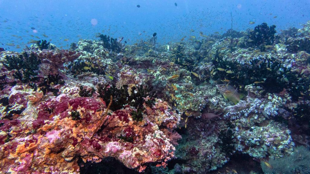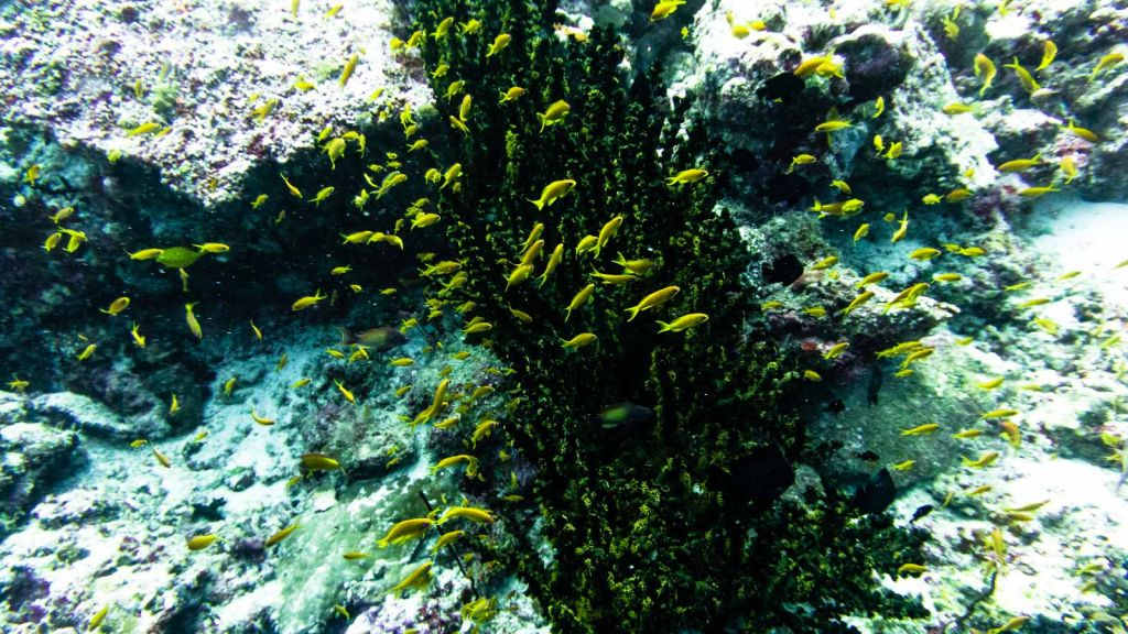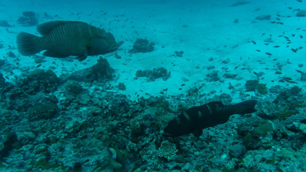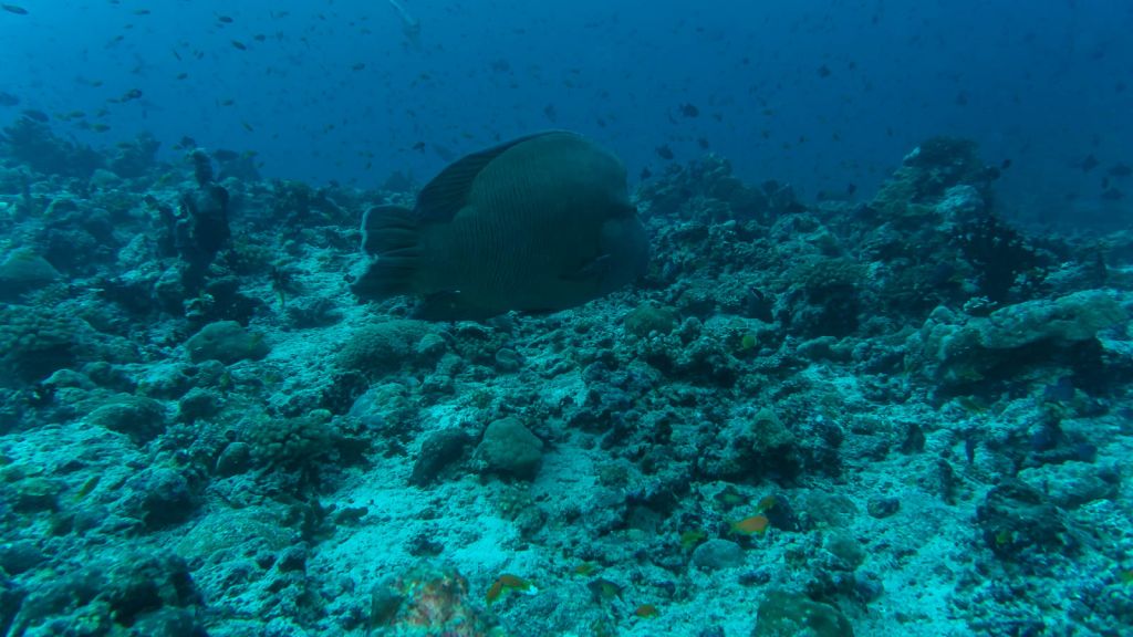 It is inside the atoll but in front of an important channel of the atoll, so the current can sometimes be really strong at Fish Head. Because of the strong currents here, the diving is absolutely spectacular.