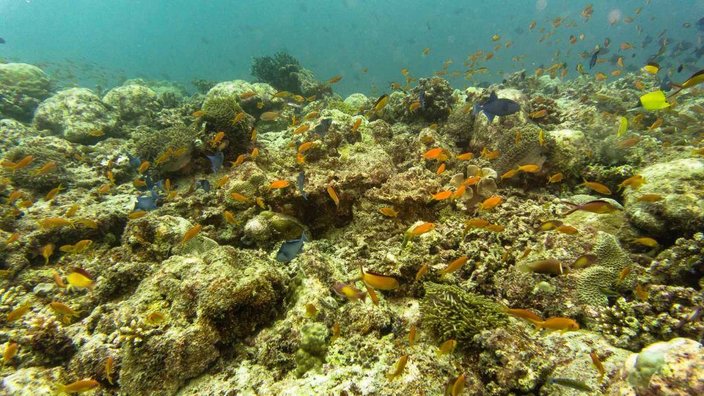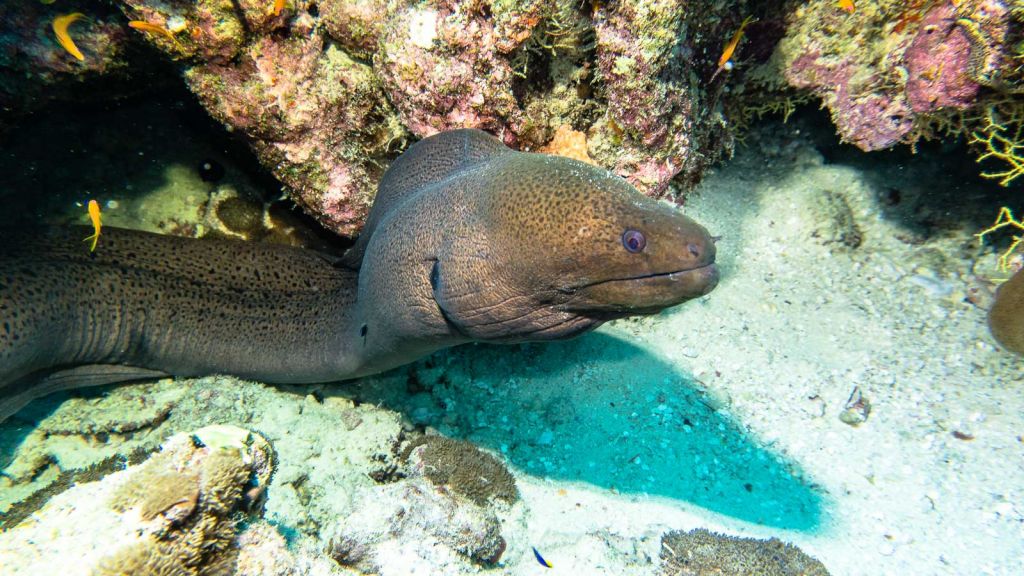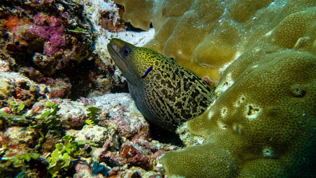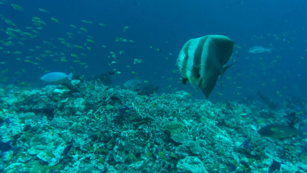 There was much more fish life as well as corals in decent condition. We saw loads of different types of fish, morals, big jacks, and a few eagle rays. However, compared to the dives we would do in the coming days, this was not that impressive.