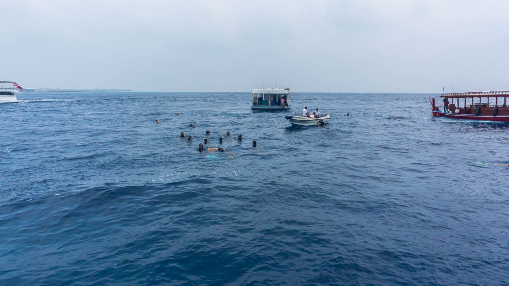 Our first dive site was nearby to Male as this is where we spent the night before. It is known to be a manta cleaning station. There were at least 5 other liveaboards in the area that all started from Male going on various routes. It turns out that us, and every other liveaboard decided to do their check dive at this dive site at this time. There were at least a hundred divers in the same site trying to catch a glimpse of the mantas.