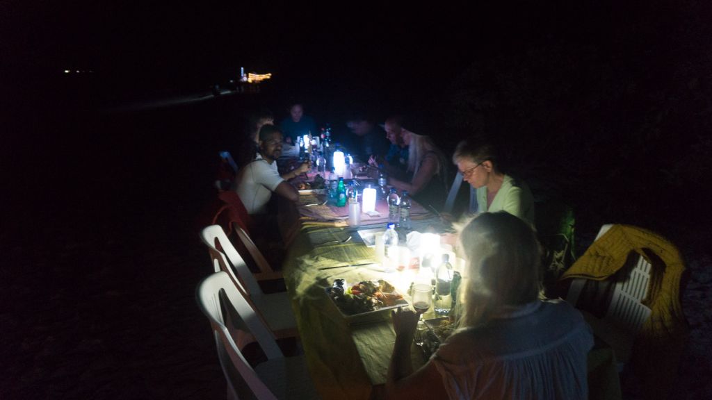 A great day was capped off by a BBQ seafood dinner on land! There is a long stretch of sandy beaches on the island of Dhigurah where our boat, along with a few others set up shop for that night’s dinner. This was by far the best meal of the trip as we were served endless amounts of tuna curry, fish, prawns, calamari, and more.