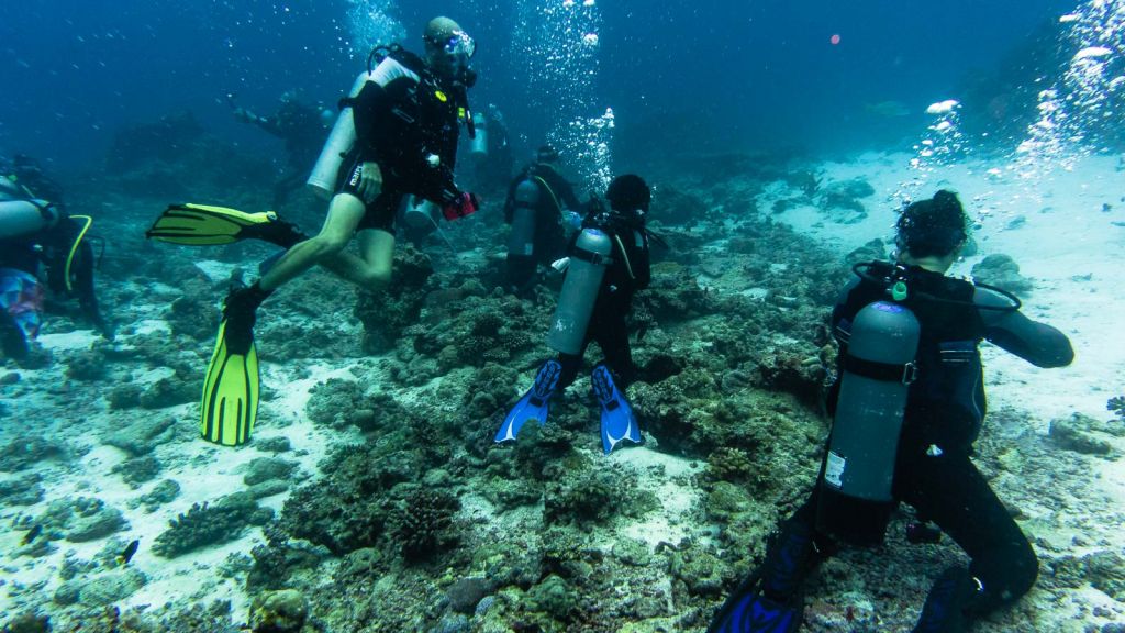 7:00am to 8:30am: Load up the dhoni, go to dive site and complete our dives