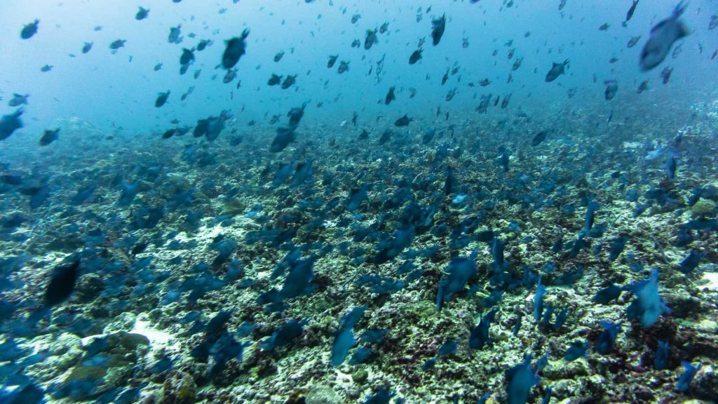 Turns out, it can get even more densely concentrated than those. Fish Head is one of the most famous dive sites in all of the Maldives. It’s a protected reef by the Maldivian Government, and no anchoring or fishing is allowed. It is a coral hill (Thila) lying on a sandy bottom at 40 meters, the top of this hill being at 8 to 12 meters.