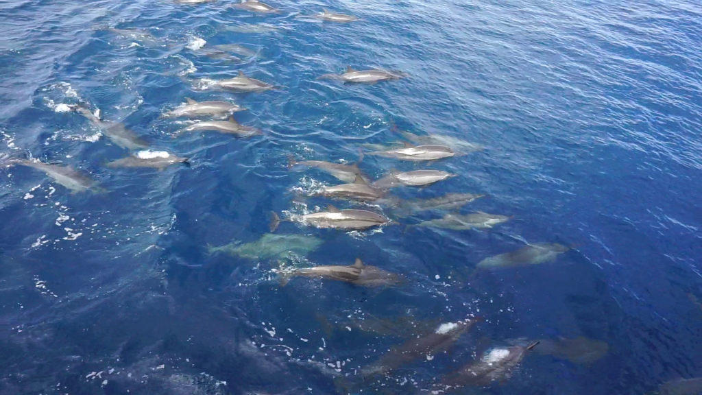 The one redeeming part of the first dive was on the way back to the main boat, we saw a huge pod of dolphins swimming near our boat. There must have been at least 100 of them following us!