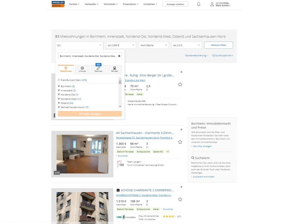 The next thing is to know where in Frankfurt you want to live. I was pretty adamant about staying within the city center so I kept my list of neighborhoods pretty small. I focused my search on the central Frankfurt neighborhoods. I didn’t want a long commute and wanted the conveniences of being in the city. This is of course, also the most expensive and difficult areas to find available apartments. I wanted to be within a 20 minute train ride of the Innenstadt which is where my office was.