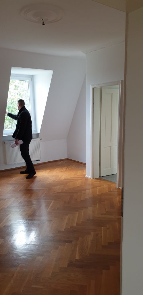 This was an absolutely amazing apartment in Nordend on the top floor with panoramic views of the city. The price was a bit higher than what I wanted to pay (€2,200 warm) and it was so huge that furnishing the place would have cost a lot of money.