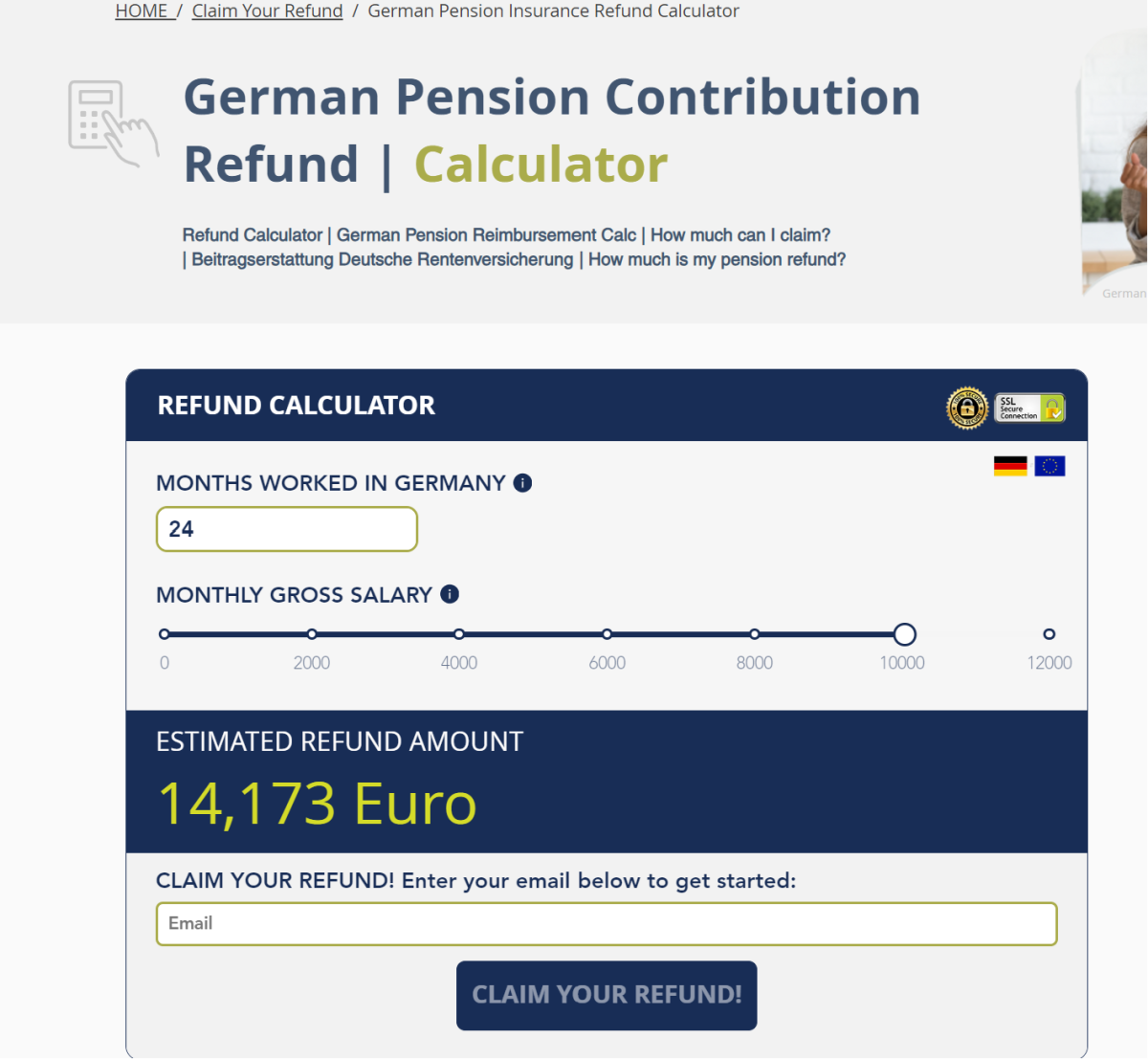 You can simply use the calculator on German Pension Refund’s website which is very simple as all you’ll need is how long you’ve worked and how much you earned. For the below example, I used an example where I worked 24 months and made €100k per year.