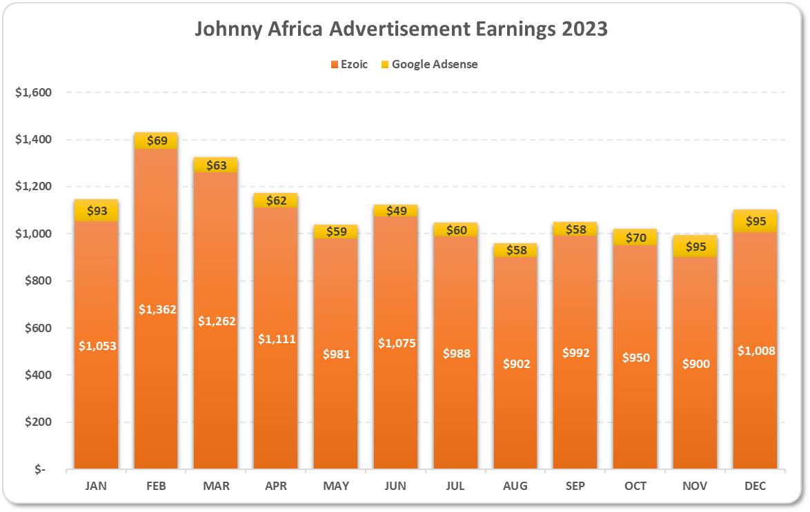 All in all, minus expenses, I have cleared almost $42,000 in 2023. After my landmark year of blogging in 2022, I never thought I would increase my profits beyond that! Given that the year saw so many ups and downs with Google core updates and the whipsaw of the economy, I feel very good for the amount Johnny Africa blog made.