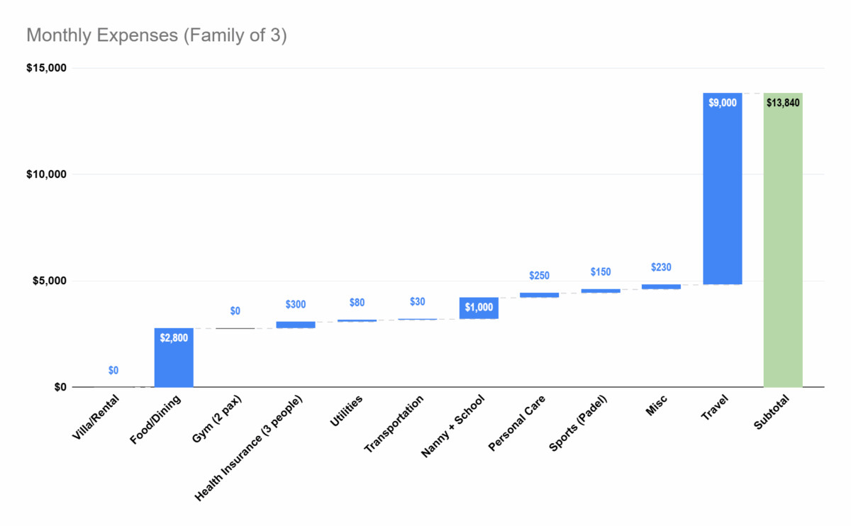 Our expenses for the month were pretty consistent. Living in Bali, we are able to keep our expenses (relatively) low given the lower cost of living. However, we live life to the fullest and do whatever we want, whenever we want. We choose to live in a very nice villa, a super nice gym, and eating out at the nicest restaurants in Bali.