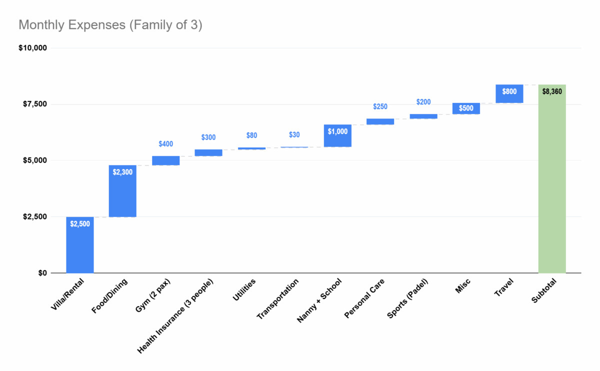 Our expenses for the month were pretty consistent. Living in Bali, we are able to keep our expenses (relatively) low given the lower cost of living. However, we live life to the fullest and do whatever we want, whenever we want. We choose to live in a very nice villa, a super nice gym, and eating out at the nicest restaurants in Bali.