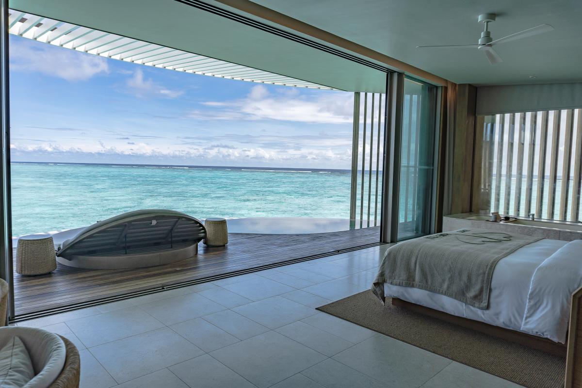 The Ocean View villas were my favorite and whatweI ended up staying in. Not only do they not have boat traffic throughout the day, they face the open ocean which means a more “end of the world” feeling. You will always hear the sound of the waves from your room as the open ocean meets the reef. You get the same incredible water colors and views from your ocean view villa as the lagoon villa and perhaps even more.
