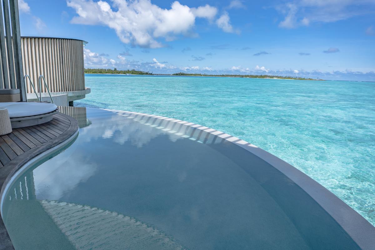 There are two overwater two bed villas on the Ring (one on Lagoon side and one on Ocean side), two overwater villas connected to the main island, and two 2-bed beach villas.