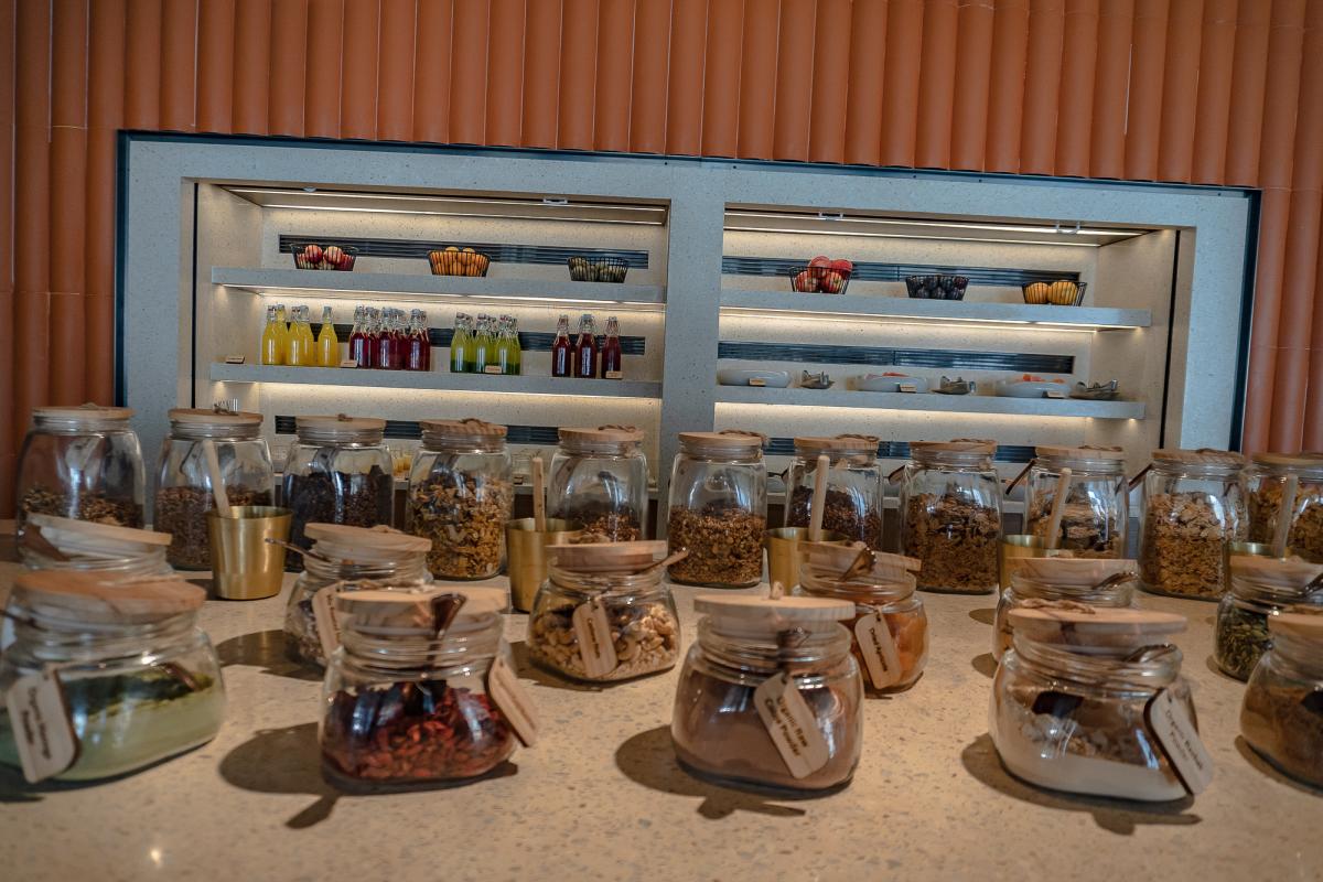 Inside the villa, no expenses are spared. The villa is spacious with elegantly appointed living spaces featuring luxury amenities and contemporary furnishings. As you walk in, you’ll see the bar which is stocked with top shelf liquor, TWG branded tea, Nespresso coffee machines with 4 different capsule types (including decaf), cocktail utensils like a shaker, cocktail books, and even a premade negroni mix. Inside the mini fridge is champagne, wine, beers, and various snacks. Non-alcoholic drinks and snacks are all complimentary at the Ritz.