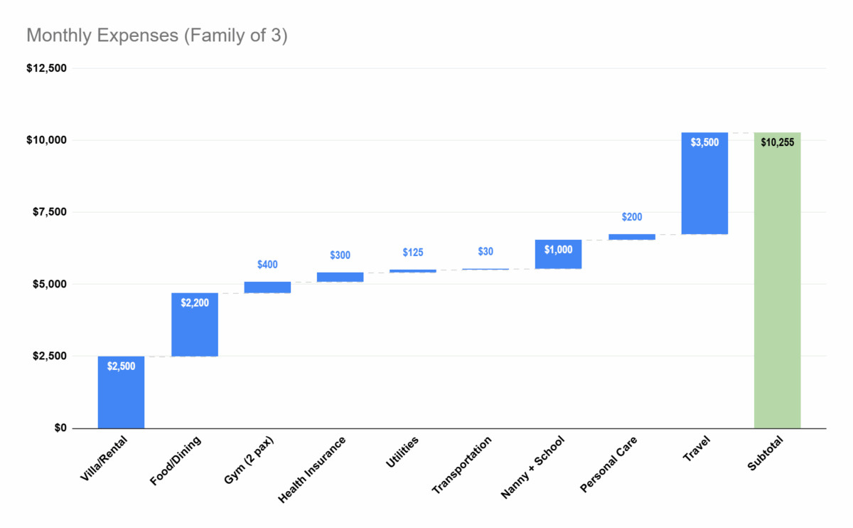 Our expenses for the month were pretty consistent. Living in Bali, we are able to keep our expenses (relatively) low given the lower cost of living. However, we live life to the fullest and do whatever we want, whenever we want. We choose to live in a very nice villa, a super nice gym, and eating out at the nicest restaurants in Bali.