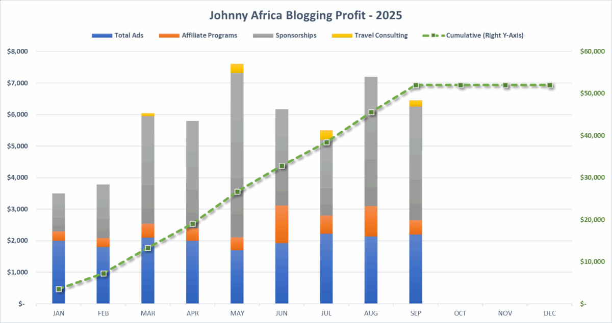 I earn money from blogging primarily from ads and sponsorships. My ads are managed by Mediavine which I joined in May 2024. In addition to Mediavine advertisements, I also earn money from Affiliate programs, sponsorships, and travel planning. More details on these things in my how to make money blogging posts.