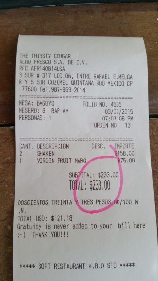 Thing is, 90% of the American tourists have no idea what the official exchange rate is and the Mexicans will take advantage of that fact and offer up ridiculously unfavorable exchange rates. For example, the exchange rate was about 15 pesos to $1 when I visited. If I went to the ATM to withdraw cash, I would get very close to this exchange rate. Restaurants, shops, and bars mostly have menus in pesos.