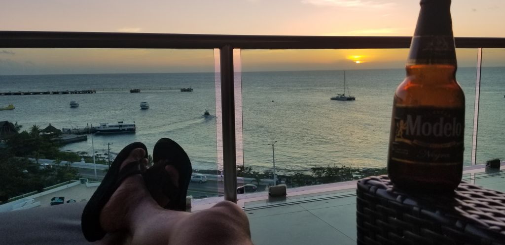 There is no shortage of amazing options on Airbnb in Cozumel. With another couple, we stayed in this absolutely stunning two bedroom condo with a huge balcony overlooking the ocean. The balcony was amazing and we had drinks on it while watching the sunset every night. It was $200 a night which split among 4 people is very reasonable. There are tons of options further into town that I found for even cheaper (below $100 for 4 people)